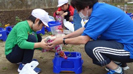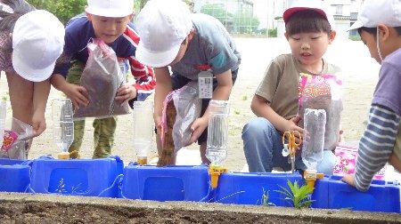 まずは、どんなふうに苗をうえるのか、植え方の勉強からです。