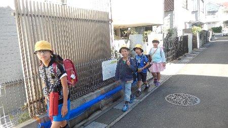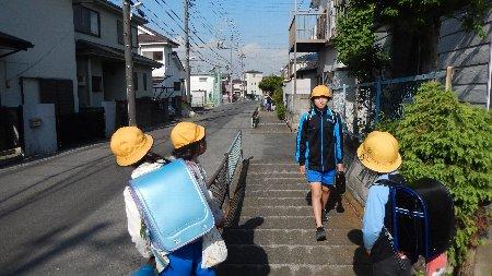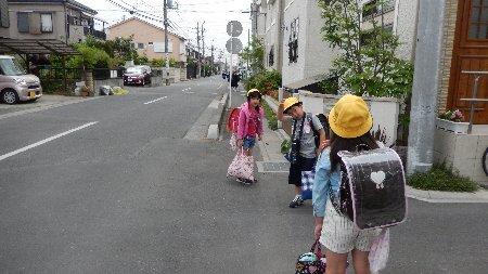 通学班の集合場所から子どもたちといっしょに歩いていただいてるお母さん、ありがとうございます。