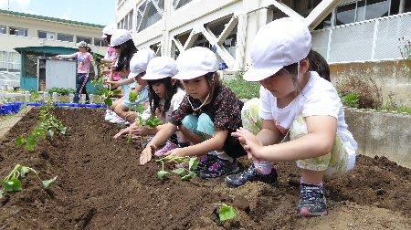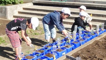 備後小学校では、学校ファームとして校内の花壇のスペースを使っていろいろな作物を作っています。