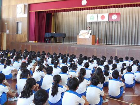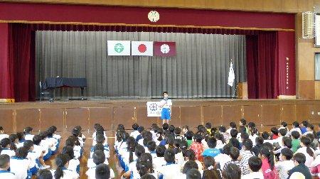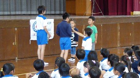 そして、今日の児童集会は、1年生がJRCに入る「JRC」加入式です。