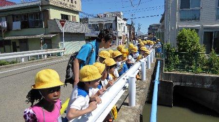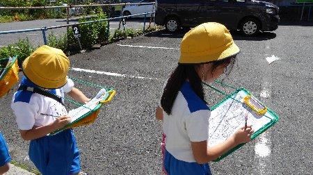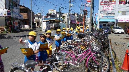 学校から武里駅の周辺を巡って、すみよい暮らしの工夫、ひとびとの努力などについて調べています。