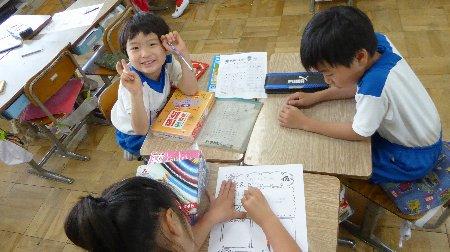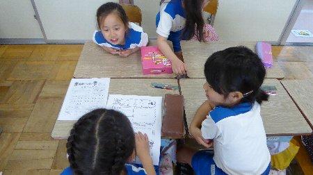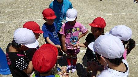 2年生がおにいさん、おねえさんぶりを発揮して、1年生と楽しく遊んでいます。