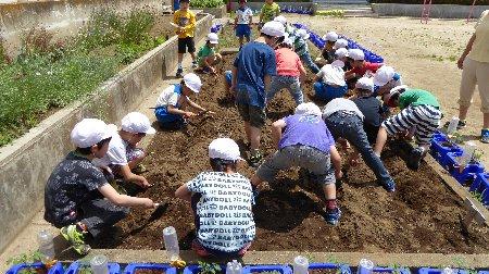 サツマイモは知っていても、それがどのように育つのか見たことがない子どもたちもいるようです。