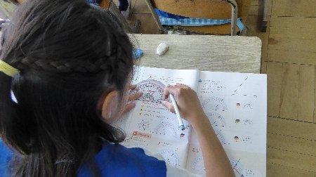 4年生の算数の時間に使い方を学ぶ「分度器」