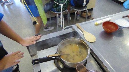 こちらの5年生は家庭科で、ごはんとみそ汁をつくる調理実習です。