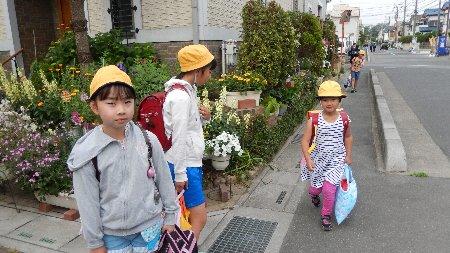 通学班の集合場所から子どもたちといっしょに歩いていただいてるお母さん、ありがとうございます。