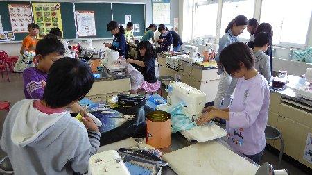 この時間はミシンで縫ったり、ポケットにフェルトでかざりをつけたりしています。