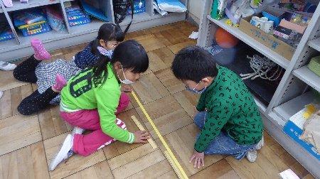 今日は30cmのものさしでははかれない、長いものの長さをはかっています。