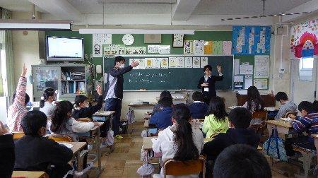 5年生の外国語活動の時間はJTEの先生も加わっての授業です。