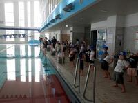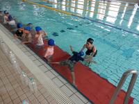 スイミングスクールのコーチの指導の下、