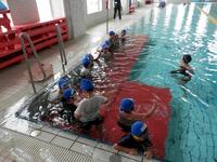 1年生が着衣での水泳体験をしましたが、