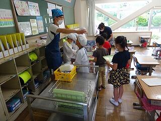 分散登校が始まってから1週間、子供たちが待ちに待った給食が始まりました。