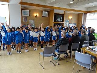 この1年、下校を見守っていくださった見守り隊さんへのお礼に1年生が見守り隊さんへの感謝の会を行いました。