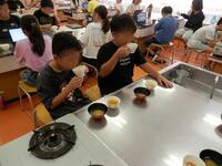 先生が鰹節を削ると、家庭科室に広がる香りに