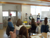 本校栄養士が塩分量の基準と調理の工夫をお話しすると、
