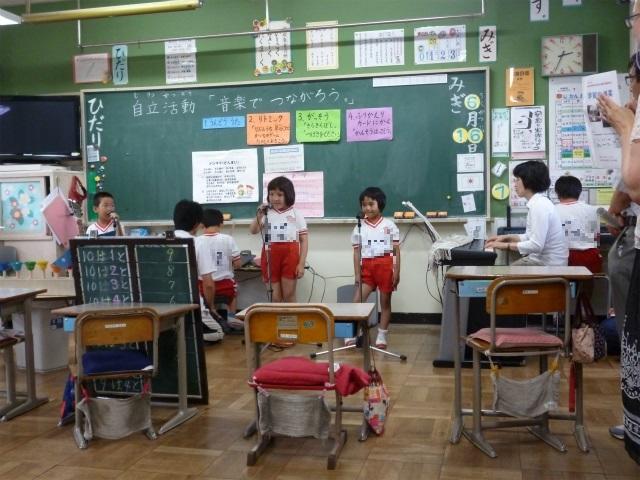 5時間目、音楽主任の先生が、示範授業を行いました。先生の投げかけに子どもたちが気持ちよく反応し、楽しそうにリズムを打ったり、歌をうたったりしていました。若い先生方の模範になる素敵な授業でした。
