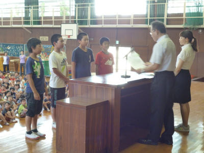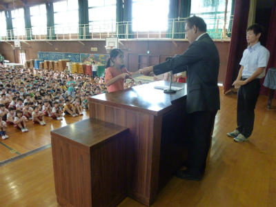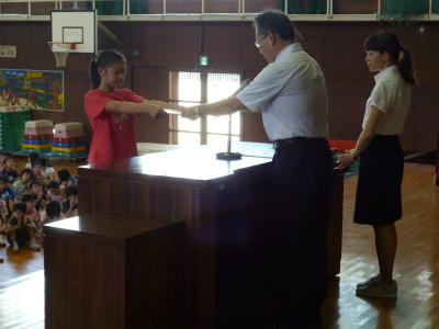 優秀な成績を収めた児童が表彰されました。