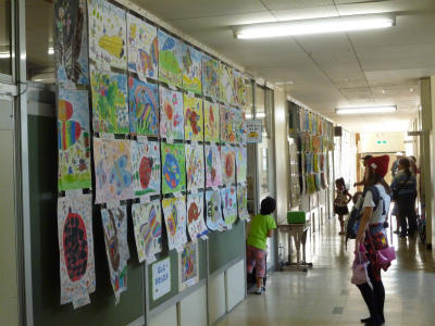 各教室の廊下には、子どもたちの夏休みの作品が掲示されています。どれも