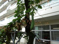 さて、何の画像か分かりますか??秋を代表する果物、柿です。たくさん実がなっています。ヘチマも隣の木に巻き付いてとても大きくなっています。