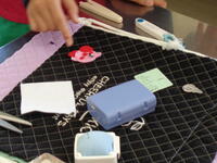 家庭科室では、6年生がナップサックの仕上げを行っています。お気に入りのワッペンをつけて、修学旅行で使うのが楽しみですね!
