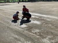 昨日の急な雨で、校庭は水たまりが…。朝、6年生が一生懸命水抜きをしてくれました。上沖小を支える6年生、立派です!