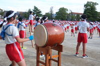 校庭で練習していた応援団がゴーゴーゴーを熱唱していると、周りで遊んでいた下級生も遊びを止めて大合唱!清々しい光景でした。運動会本番もとても楽しみです!