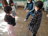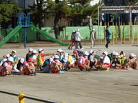 午前の活動を無事に終え、広場で「猛獣狩りに行こうよ」と「ジャンケン列車」を楽しみました。少し風が強かったですが、風にも負けず、みんな大興奮でした。
