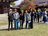 ならぬものです。無事、最初の目的地、日新館に到着です。これから班行動です。集合写真ではみんなで赤べこポーズ!