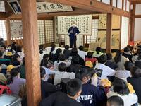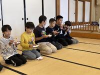 全員で日新館での教えを学びました。最後に什の掟を聞き、揃えて礼と返事をしました。初めから進んで正座をして話を聞く子も。素晴らしい姿勢です。