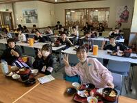 昼食中です。全員前を向きながらですが、楽しそうに食べています。いよいよ午後は会津市内を班別行動です!