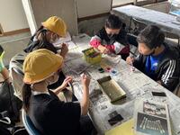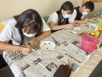 本日最後の活動は赤べこ絵付けです。楽しそうに赤べこに絵付けをしています。どんどん筆が進む子もいれば、一筆入魂で進める子もいますね。素敵な赤べこの完成が楽しみです。