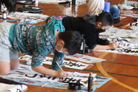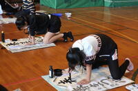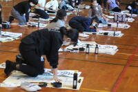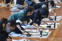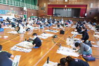 たくさんの人が集まっているのに、シーンとした体育館。子ども達は一筆一筆に心を込めて字を書いています。
