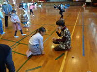 また、3・4時間目には地域の皆さまをお招きして1年生が昔遊びを教えていただきました。