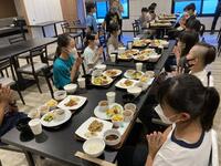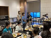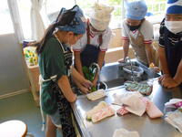 6・7・8・9組は育てた野菜でピザを作って食べていました。おいしそうな匂いにつられてしまいました。