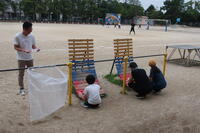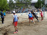 さて、校庭では1・2年生が合同で外遊びを行っていました。2年生が遊びを企画して、1年生と仲よく遊ぶことを目標に準備をしました。