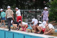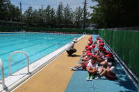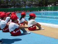 校長先生から学習の心構えとして3つの「あ」…「あんしんしない」「あわてない」「あなどらない」というお話をしていただきました。今日のようにお話をよく聞いて、元気いっぱい水遊びをしたり泳いだりしてください!
