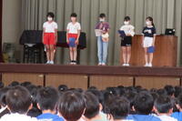 今日は音楽朝会でした。1年生と5年生が発表をしました。1年生は元気いっぱいに、5年生は2部合唱を美しく歌うことができました。