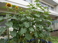 以前種をまいたひまわりはすっかり大きく育ち、背丈が2mくらいにまでなりました。すごいですね。上沖小の子ども達も、こんな風にあっという間に成長しています!