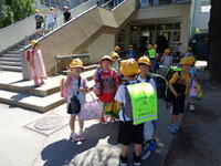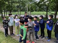 だるまさんがころんだやドロケイなど、みんなで楽しく遊ぶことができました。虫やかえるを見つけたり、シロツメクサでアクセサリーを作ったり、工夫して遊ぶこともできました。1年生にとっては少し遠い道のりでしたが、行き帰りも交通安全に気をつけて歩くことができ、とても立派でした!暑かったので、今日はゆっくり休んでくださいね。