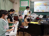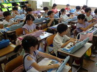 今日も短縮日課でしたが、どの学年もさまざまな取組を進めています。1年生は初めての鍵盤ハーモニカを使った学習です。特別に音楽専科の先生が授業をしています。