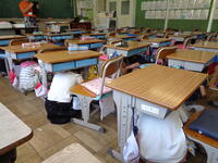 静かに素早く机の下にもぐって頭を守ることができ、いざという時にも安全に行動できるのではないかと思いました。、地震発生直後は、「姿勢を低くして、頭を守り、動かない」ことが大切です。命を守る行動がいつでもできるように、これからも様々な機会で指導していきます。