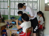 今日は埼玉県立大学から学生30名が来校くださり、2~6年生に歯科保健にかかわる授業をしてくださいました。
