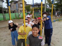 初めに自己紹介をして、鬼ごっこやドロケイを楽しみました。今日は暑かったですが、水分補給をしっかりとして元気に遊ぶことができました!来年は1年生のみなさんが同じようにできるといいですね。