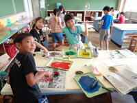 2学期がスタートして2週間。上沖小の活動も様々な場所で楽しそうに行われています。中庭では3年生が理科の学習中です。秋の昆虫を探しているようです。どんな昆虫がいるかな??また、図工室では黙々と作品づくりに取り組んでいます。友だちと協力して取り組む様子も見られます。