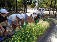 今日は3年生が向日葵の苗を植えました。地域のボランティアの方に植え方を教えていただき、大きくなあれと願いをこめて植えました。
