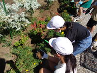隅々まで落ち葉や雑草を一生懸命集めていました。いっぱいになったビニール袋がいくつもできました。ありがとうございました!また、6789組では一人一つ、自分の畑「マイファーム」で野菜を育てています。毎日の水やり頑張ってます。収穫時期が楽しみですね!