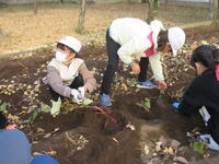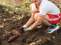 清掃と昼休みの時間を使って、給食委員さんたちが、サツマイモ掘りをしてくれました。
