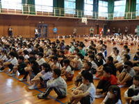 今日の朝は雨でできなかった運動会の閉会式練習を行いました。校庭で行う準備をしていましたが、準備してさあ校庭へ!という時に雨…。体育館からオンラインで実施しました。ですが、体育館に聞こえてくる教室からの声は元気ではつらつとしていて、本番が一層楽しみになりました。明日は最後の全体練習です。本番に向けて不安がないようにしていきましょう!