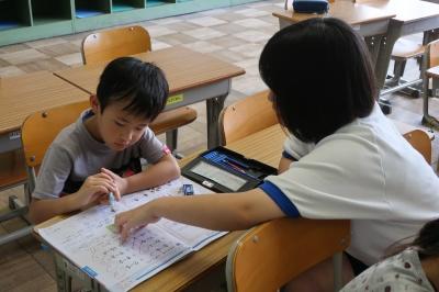 共栄大学の学生3人が教育実習にきています。将来の先生を目指して猛勉強中です!