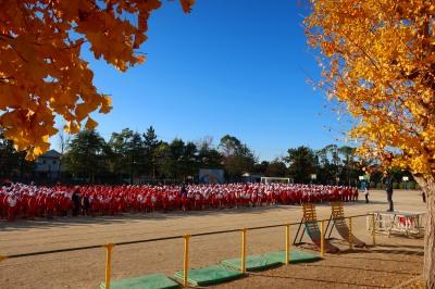 銀杏もきれいに色づき、雲一つない快晴の朝、運動タイムを行いました。持久走の後は、なわとび運動です。また、1年生、2年生で支援籍学習も行いました。宮代特別支援学校と春日部特別支援学校のお友達も一緒になわとびをがんばりました。